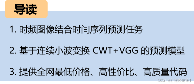 本期更新推出一种基于连续小波变换(Continuous Wavelet Transform, CWT)与VGG模型的时间序列预测方法,将传统时频分析技术与深度学习相结合,有效解决了复杂时间序列的建模难题。通过将一维时序信号转换为二维时频图像,充分利用卷积神经网络(CNN)对图像特征的强大提取能力,在保证时序局部特征的同时,显著提升模型对非平稳信号的适应性。