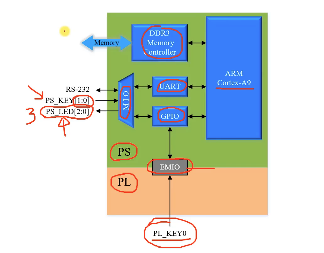 EMIO:是拓展MI,连接到PL的(连接PL的模块或者使用PL的引脚)