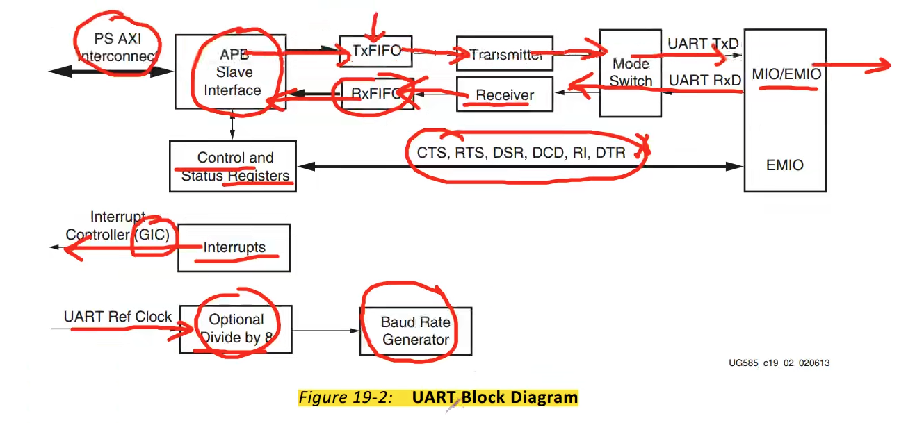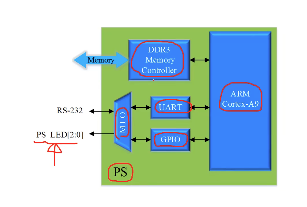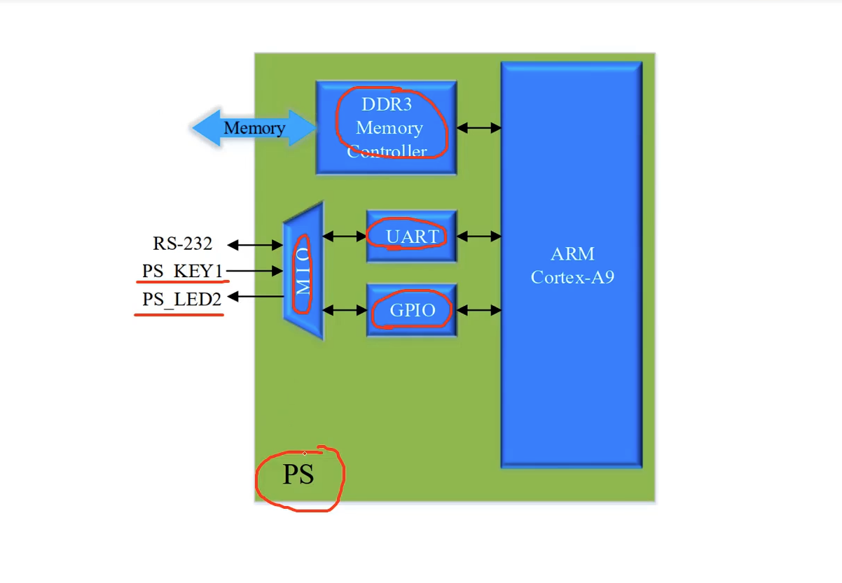 MIO:多路复用,引脚不够用可以先连接MIO(UART,SPI等)。将来自PS外设和静态存储器接口的访问多路复用到PS的引脚上