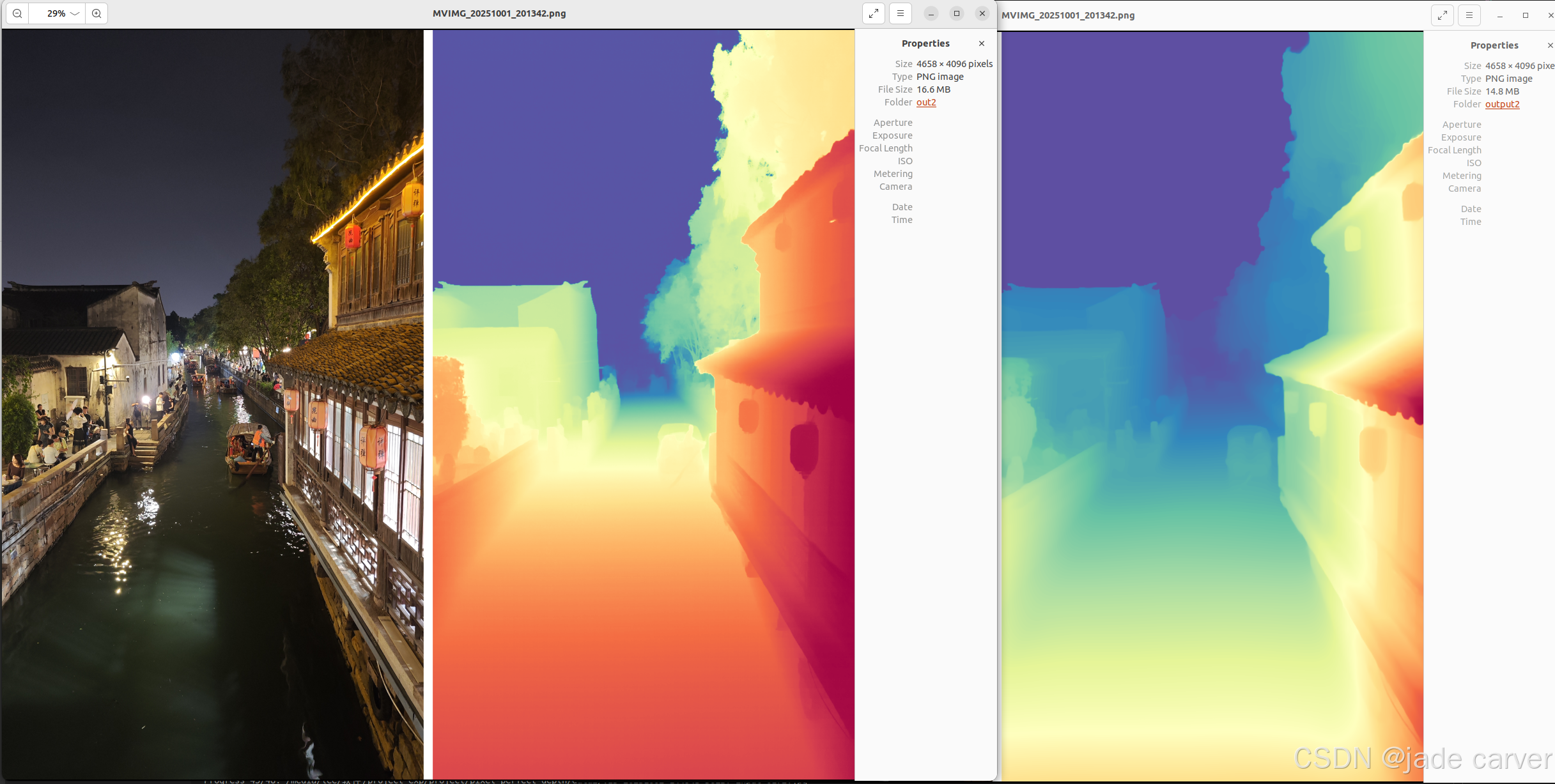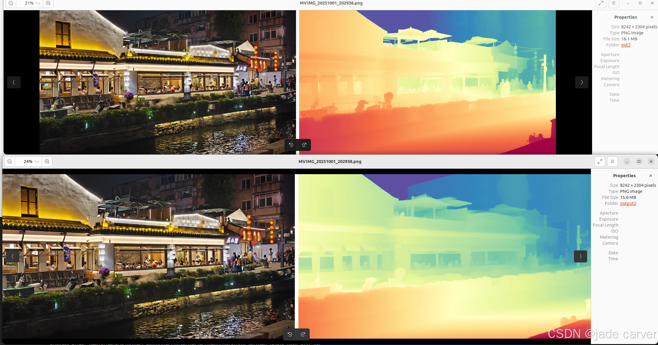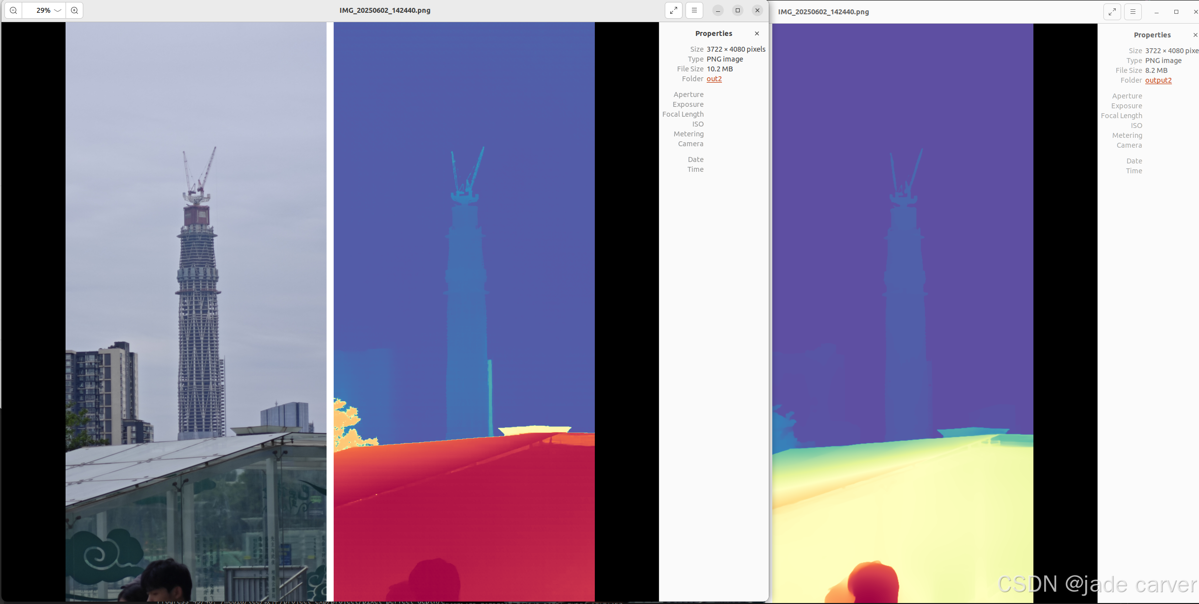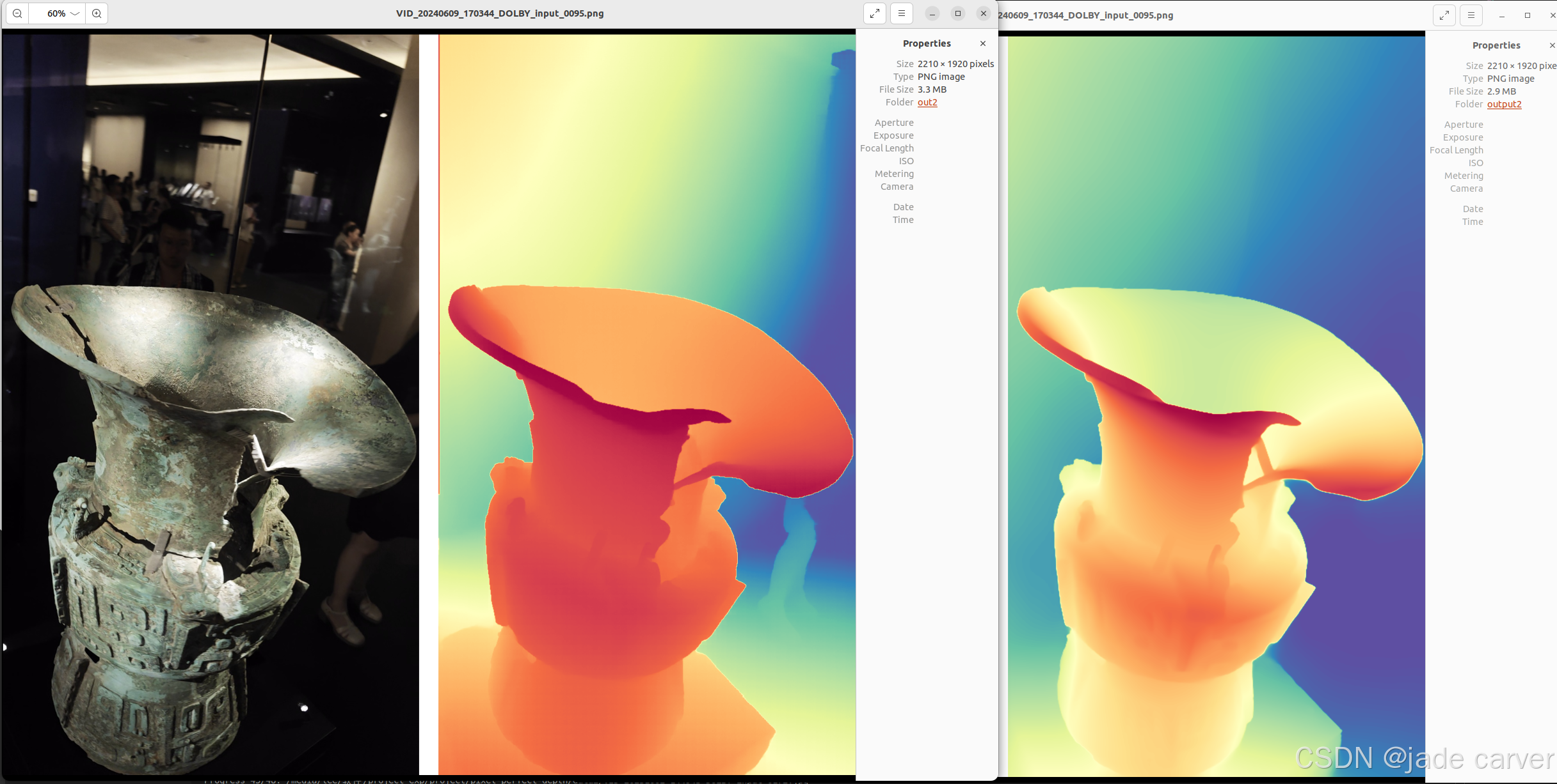 结论:同等距离水平上,本文方法在细节效果上相比depth anything v2表现较好,也就是说,只要估计得到深度值,细节上是相对较好的。但是在超远距离情况下,或者超近距离情况下,会有丢失深度的情况