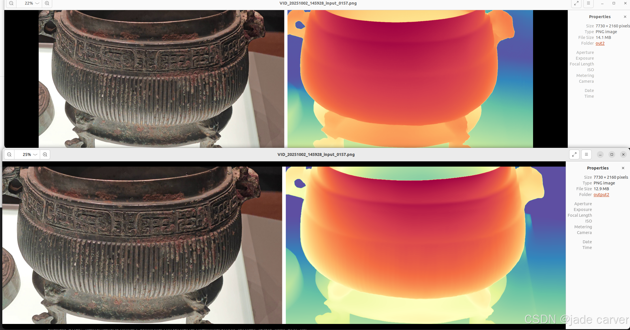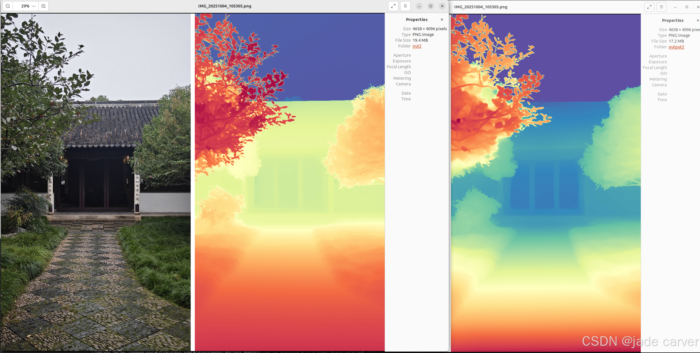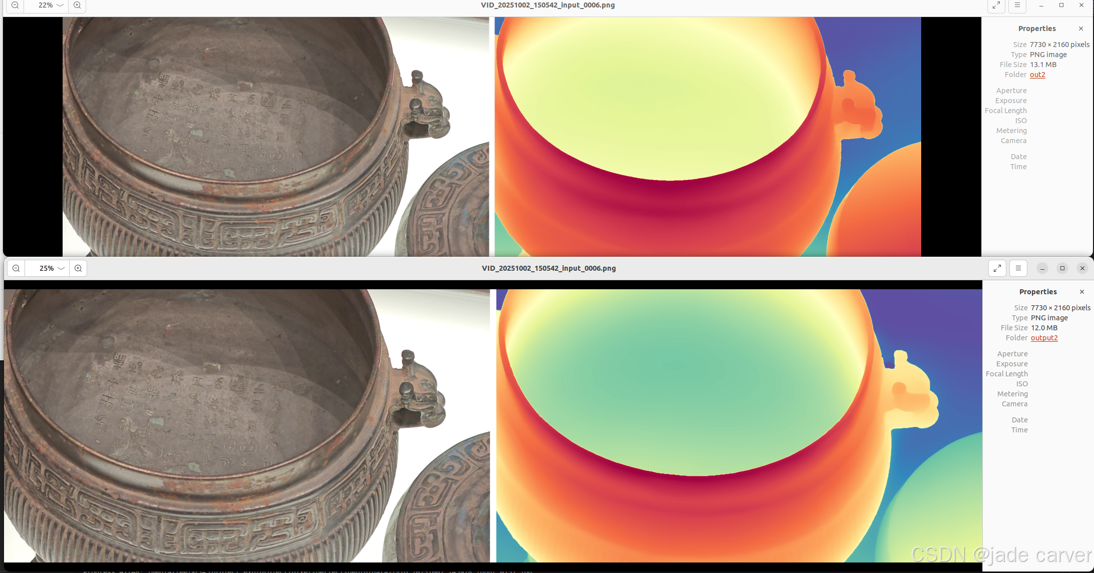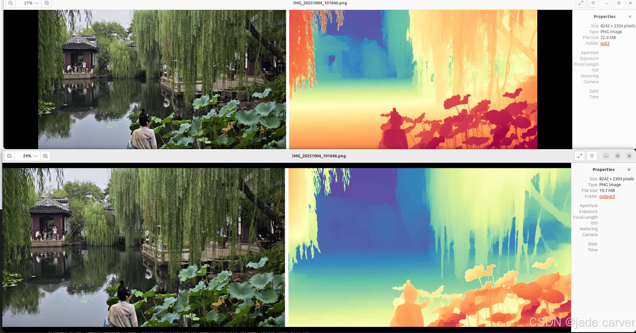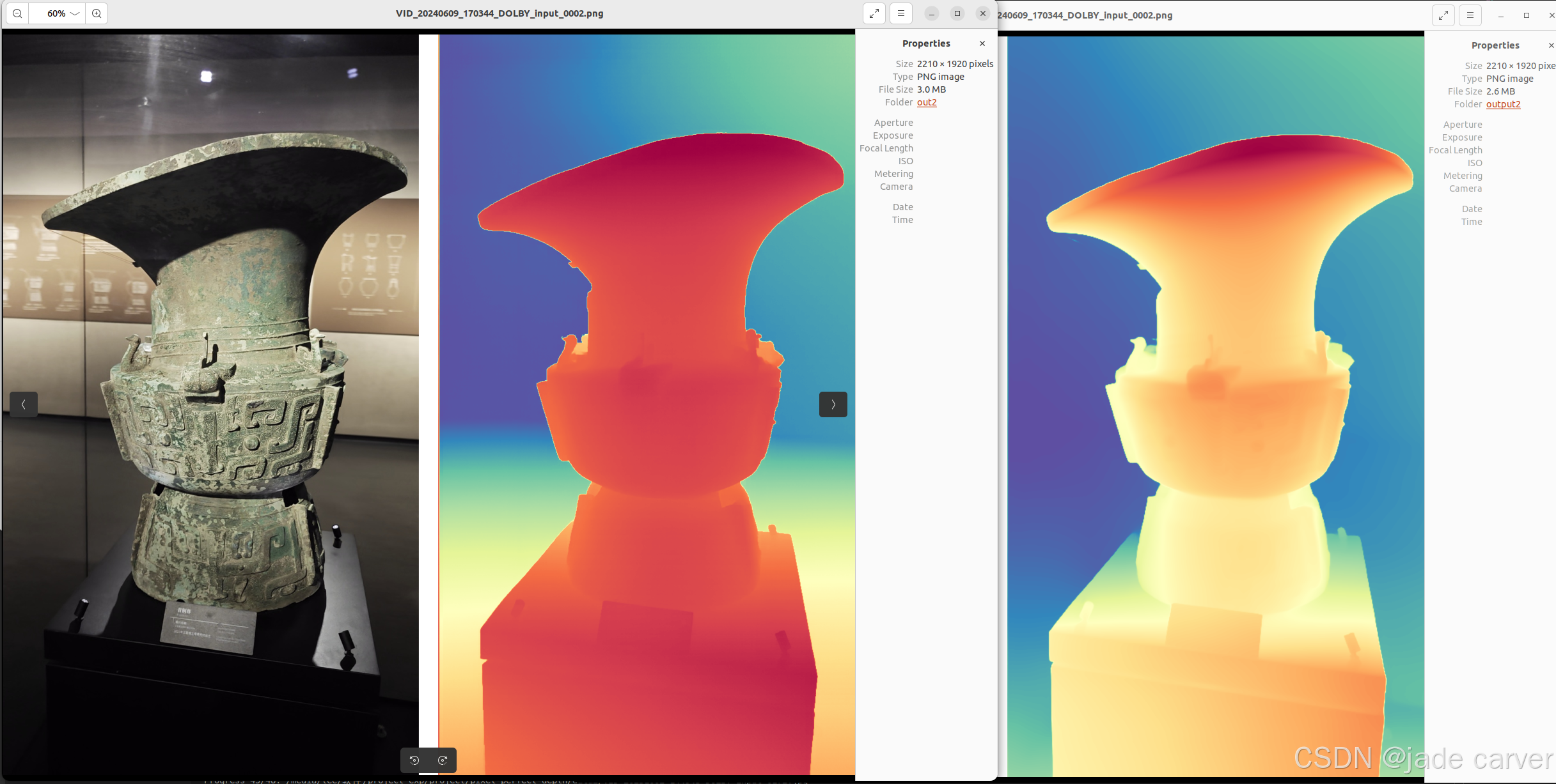 结论:同等距离水平上,本文方法在细节效果上相比depth anything v2表现较好,也就是说,只要估计得到深度值,细节上是相对较好的。但是在超远距离情况下,或者超近距离情况下,会有丢失深度的情况
