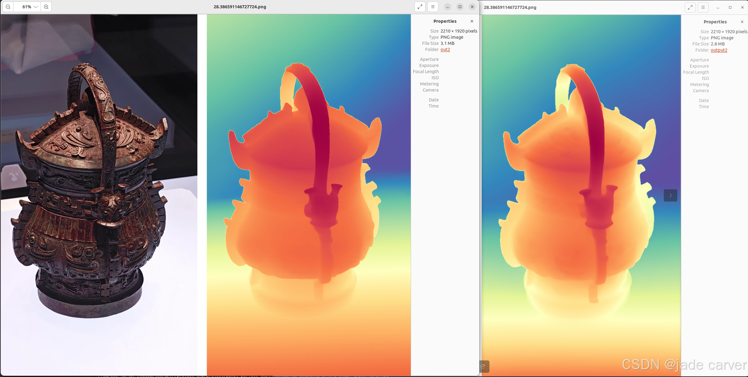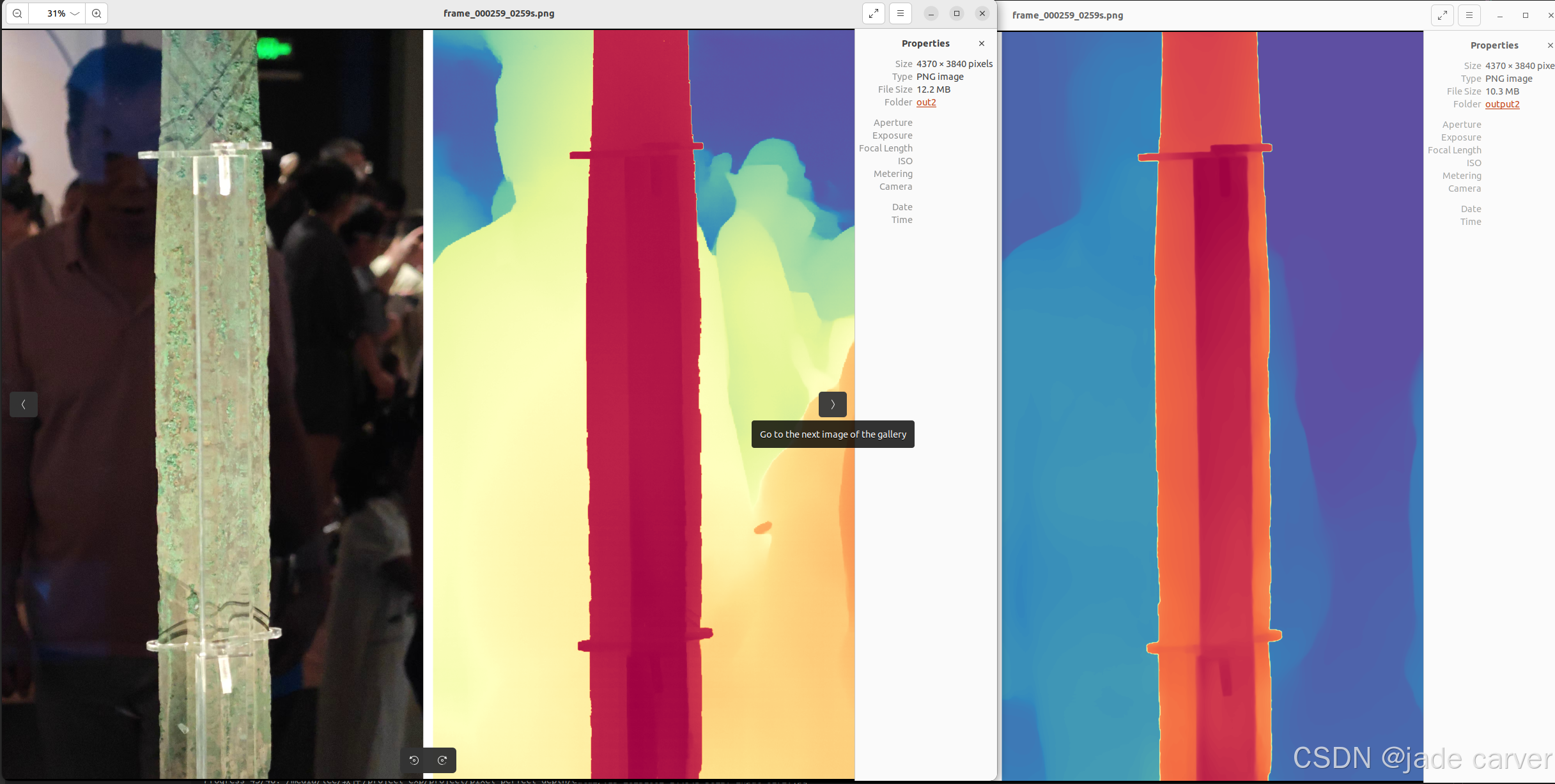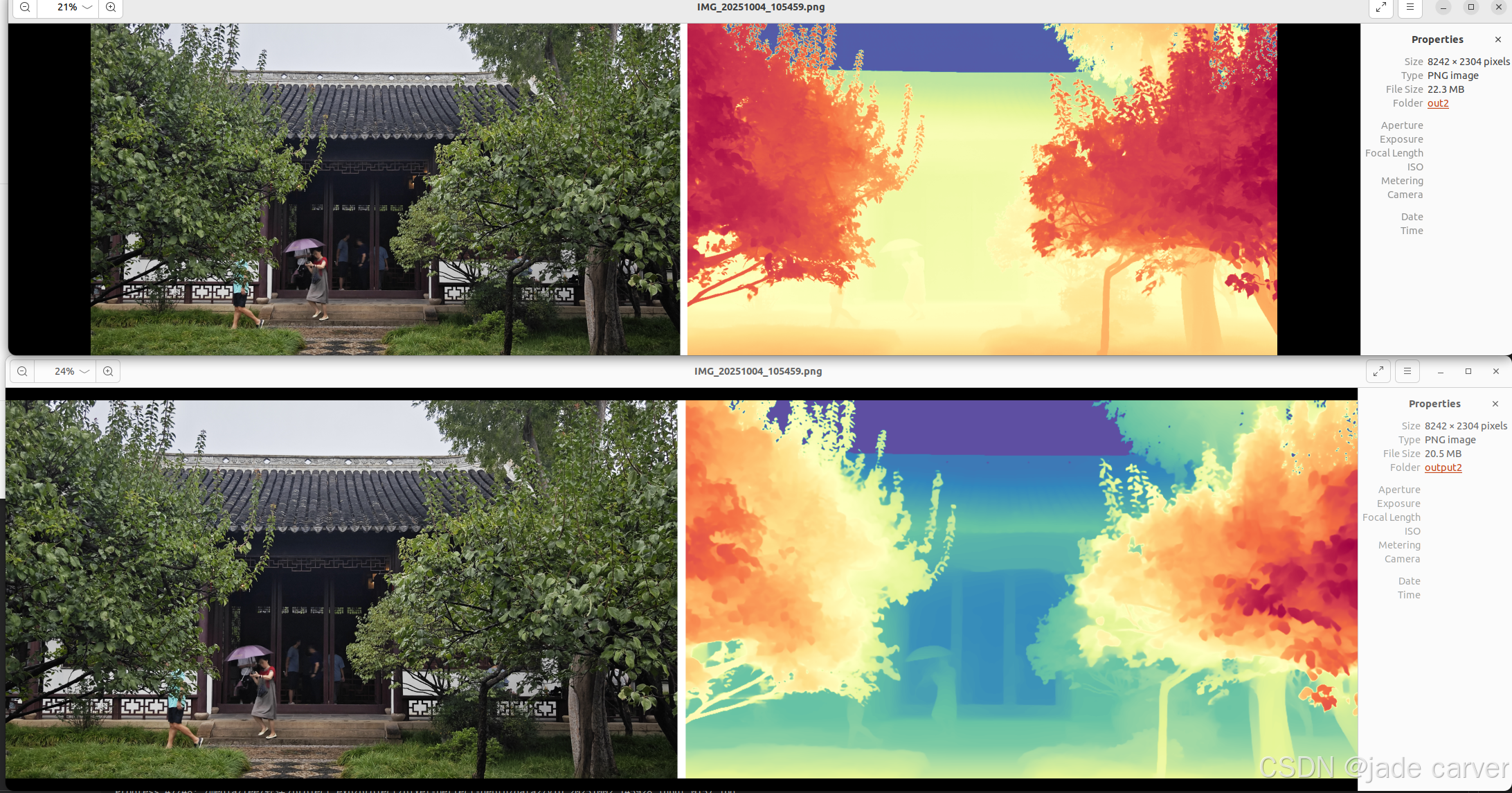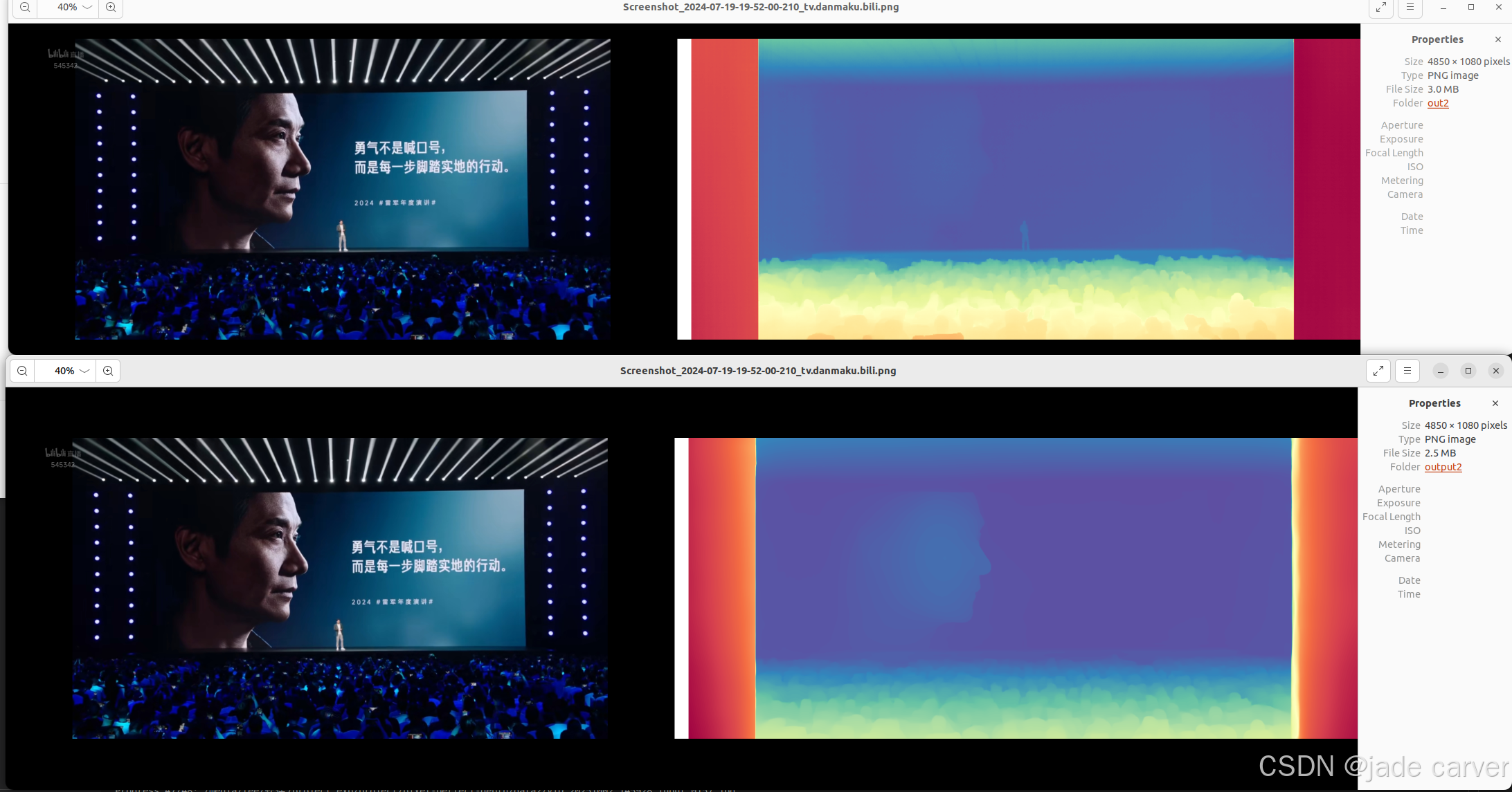 结论:同等距离水平上,本文方法在细节效果上相比depth anything v2表现较好,也就是说,只要估计得到深度值,细节上是相对较好的。但是在超远距离情况下,或者超近距离情况下,会有丢失深度的情况