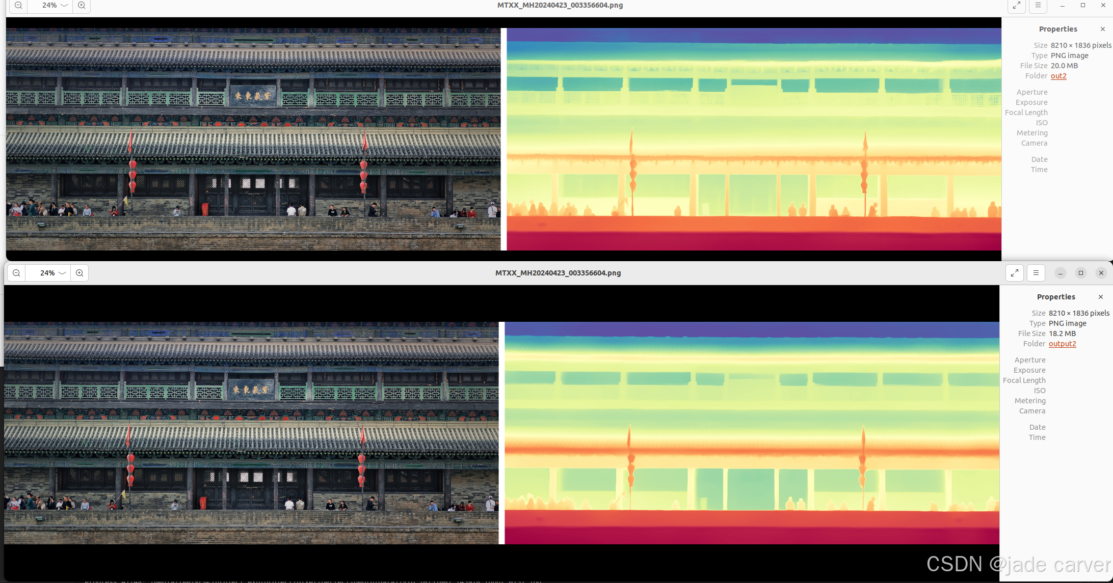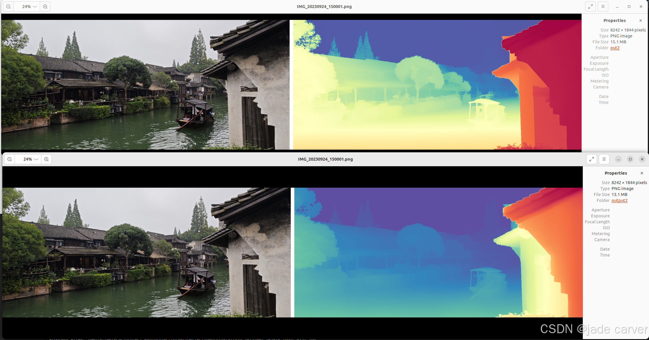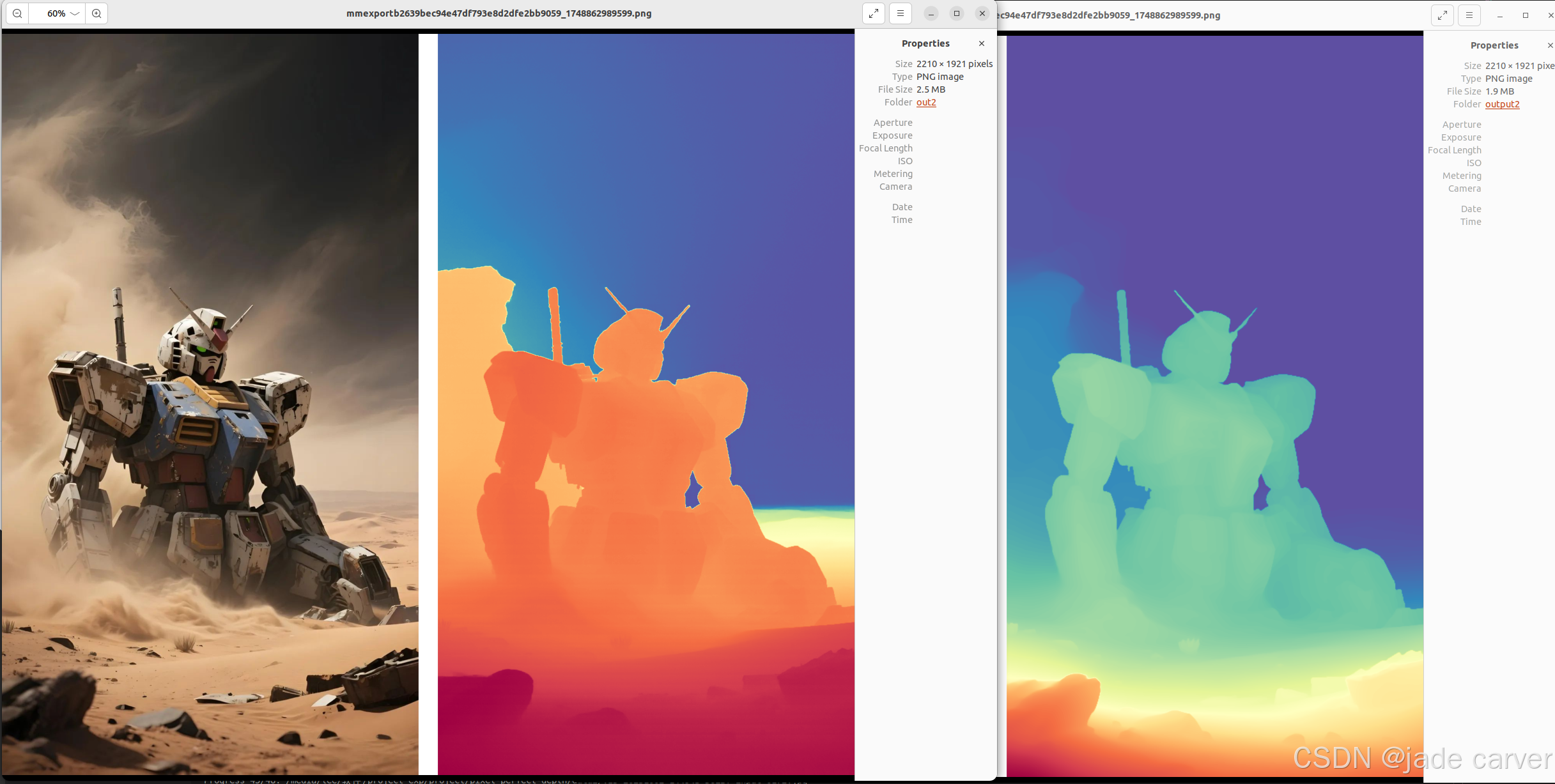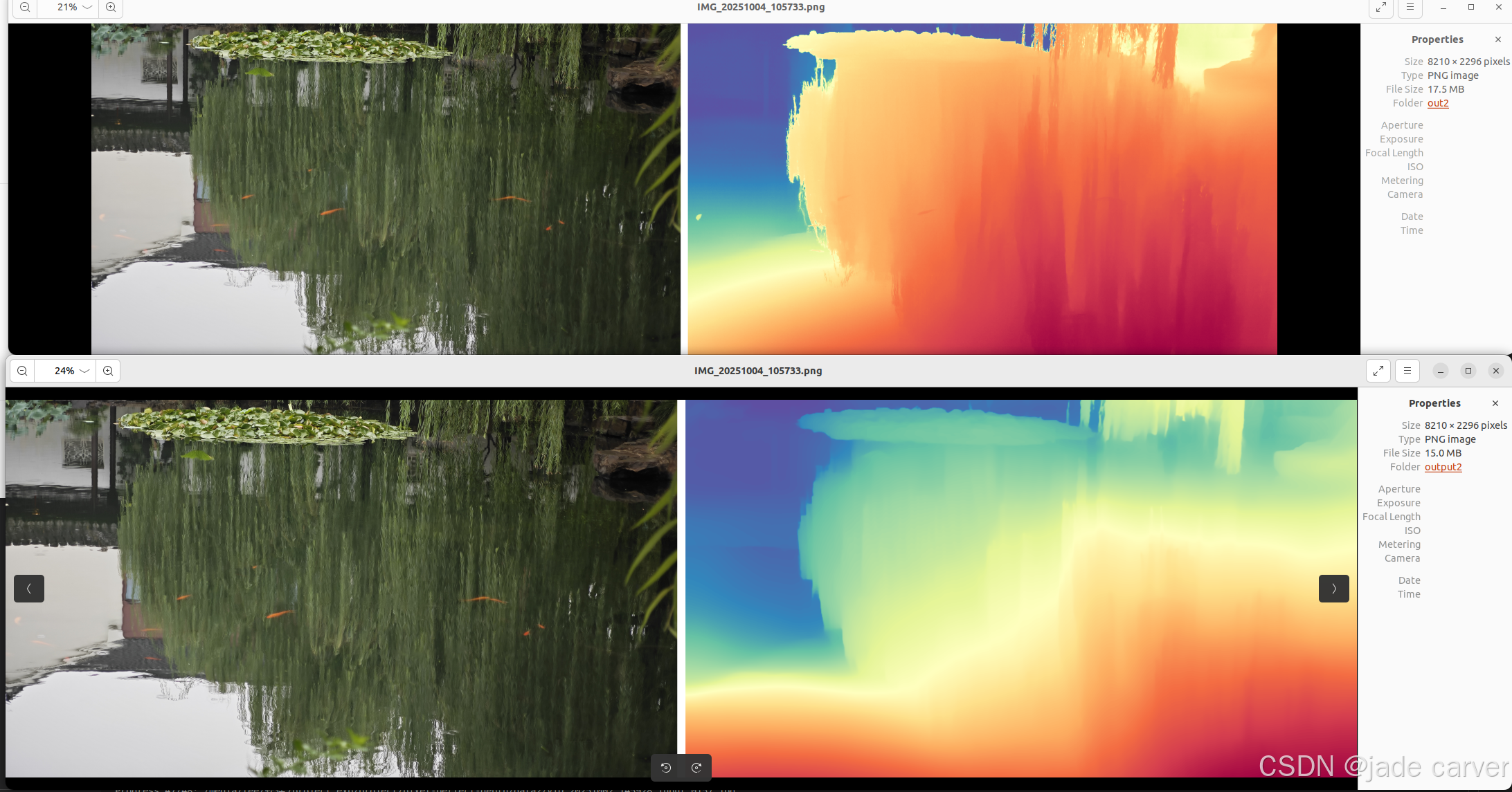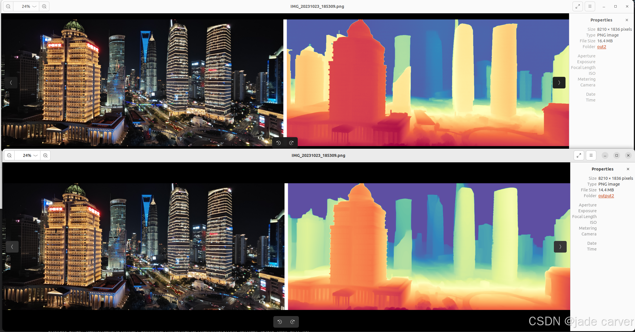 结论:同等距离水平上,本文方法在细节效果上相比depth anything v2表现较好,也就是说,只要估计得到深度值,细节上是相对较好的。但是在超远距离情况下,或者超近距离情况下,会有丢失深度的情况