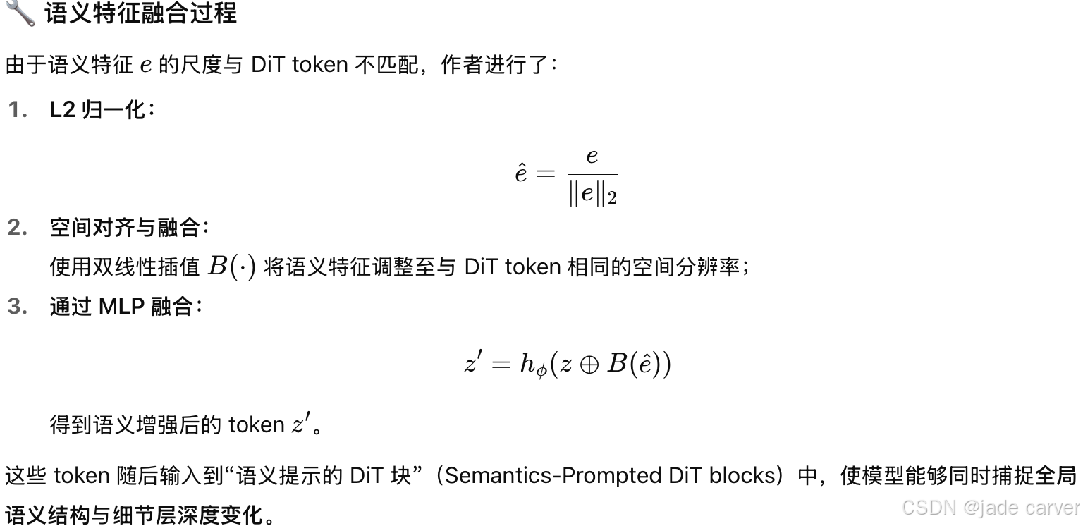 Semantics-Prompted DiT(语义引导扩散Transformer)建立在 DiT [39] 的基础上,完全采用 Transformer 架构,没有任何卷积层。