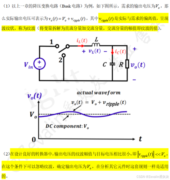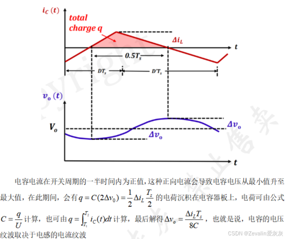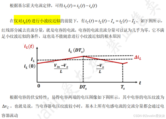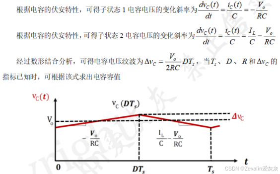 (1)前面在介绍Buck电路的时候仅对电感进行电流纹波设计,并没提及对电容的电压纹波设计,这是因为开关不影响电容的状态方程,但根据基尔霍夫电流定律,可以发现电容的纹波是与电感的纹波有关系的。