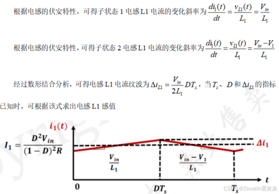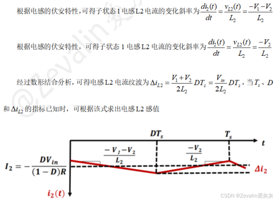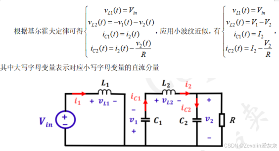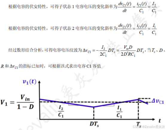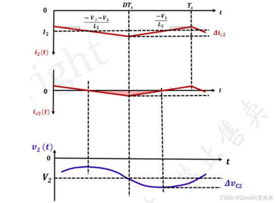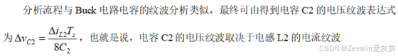 (1)前面在介绍Cuk电路的时候,并未提及对电容C2的电压纹波设计,这是因为开关不影响电容C2的状态方程,但根据基尔霍夫电流定律,可以发现电容的纹波是与电感的纹波有关系的。