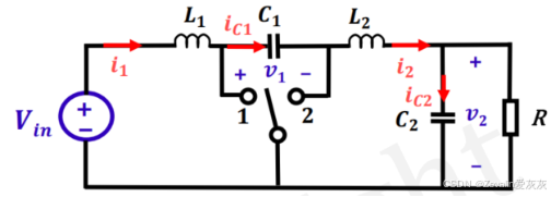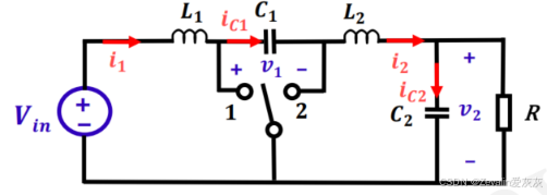 (1)下图所示的是Cuk电路原理图,单刀双掷开关在位置1和位置2之间轮换。