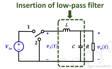(2)将转换器中的LC电路抽象为线性时不变系统,可以发现它的本质是低通滤波器的插入,如果截止频率设得低于输入信号分解出的一次谐波频率,那么滤波器输出的信号只包含输入信号的直流分量。