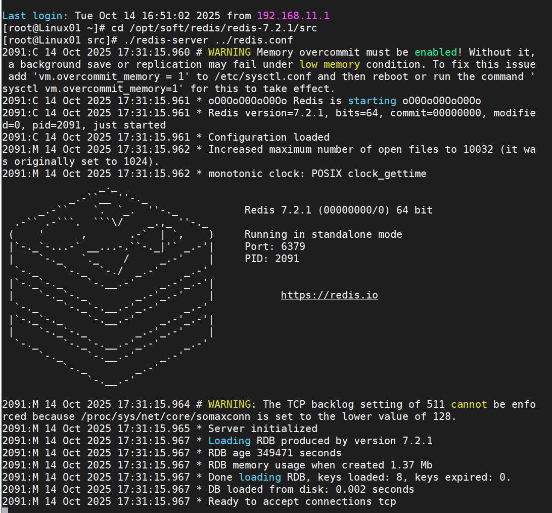 注:使用Redis时,要打开Linux虚拟机,进入Redis中的src,出现以下画面即可