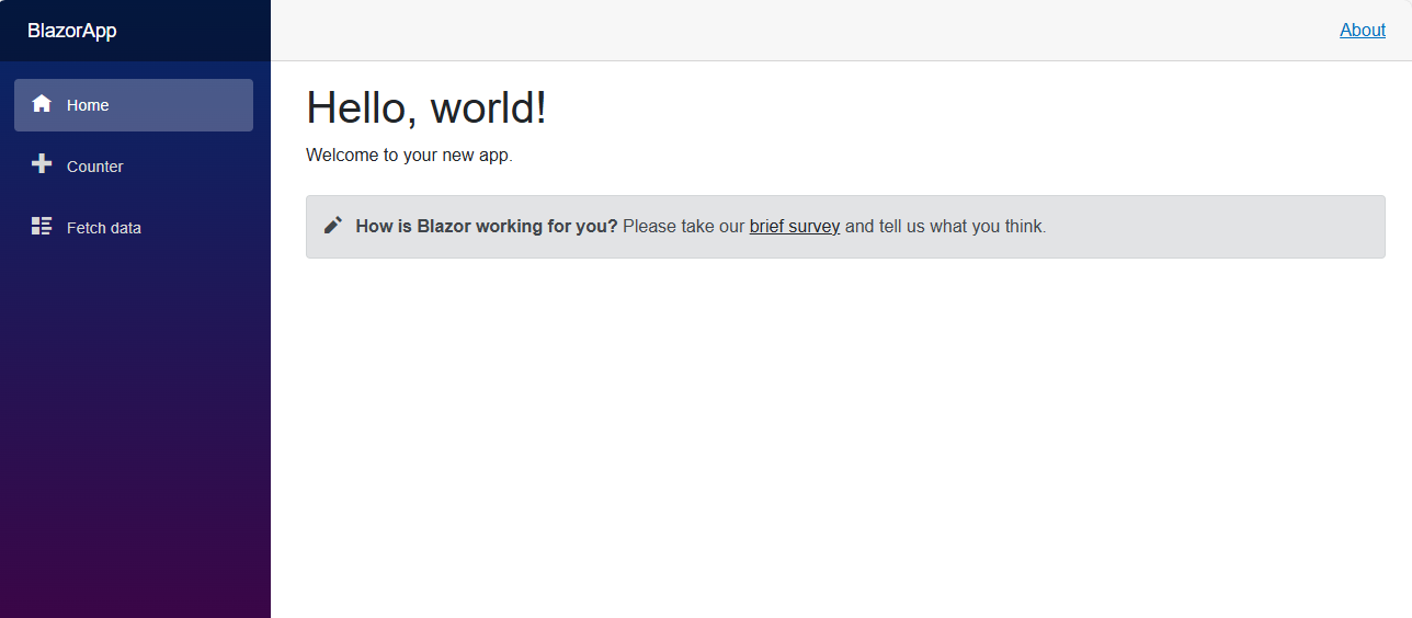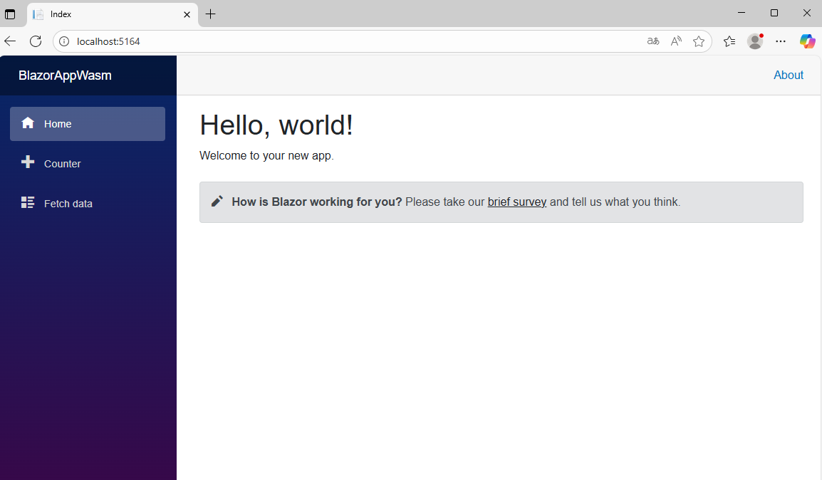 等待应用在浏览器中启动。转到以下页面后,你已成功运行第一个 Blazor WebAssembly 应用!