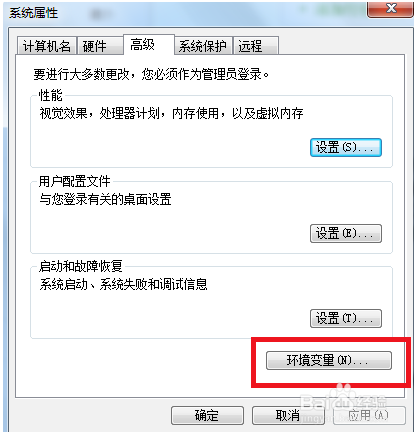 4、到了这,离成功又近了一步,开始设置环境变量。我的电脑是win7,这里主要以win7为例,其他系统可自行查阅资料,在桌面找到计算机图标右键选择属性,出现如下图一所示内容,点击高级系统设置,出现下图二内容,点击环境变量。