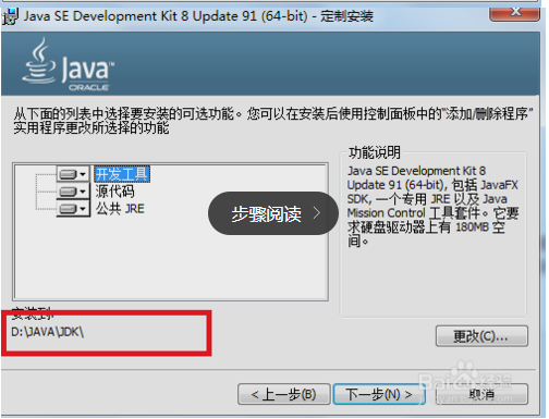 3、下载完后,找到下载后的这文件,双击运行。点击下一步,出现如下图一内容,这里是设置安装路径,可以默认,用户可自行选择,这里我安装在D:\JAVA\JDK,如下图二。这路径记好,一会设置环境变量需要用到,设置好后点击下一步,过一会会出现安装Jre路径,如下图三,用户自行选择,点击下一步等待安转完毕即可。