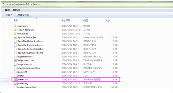 5、操作完上面的步骤,我们就可以点击Jmeter中bin目录下面的jmeter.bat文件即可打开Jmeter了。