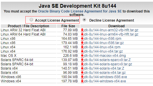 2、选择accept,之后才能下载对应的版本;这里我选择的是Windows x86版本;