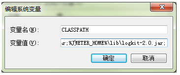 (2)编辑CLASSPATH变量,加上%JMETER_HOME%\lib\ext\ApacheJMeter_core.jar;%JMETER_HOME%\lib\jorphan.jar;%JMETER_HOME%\lib\logkit-2.0.jar;注:如果电脑重没找到CLASSPATH,添加在PATH也可以;