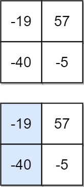 输入:matrix = [[-19,57],[-40,-5]] 输出:-59 解释:如图所示,为和最小的下降路径