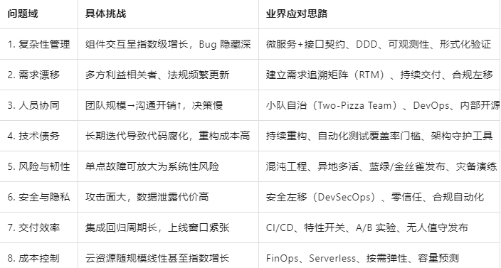 从“个人英雄”到“集团军作战”,软件演化本质是持续对抗复杂性的过程。未来,AI 辅助编程、低代码、自动化验证、自适应架构将进一步成为降低复杂度的关键杠杆;但“人”的协同与“组织”的成熟度,仍是决定大型软件成败的最大变量。