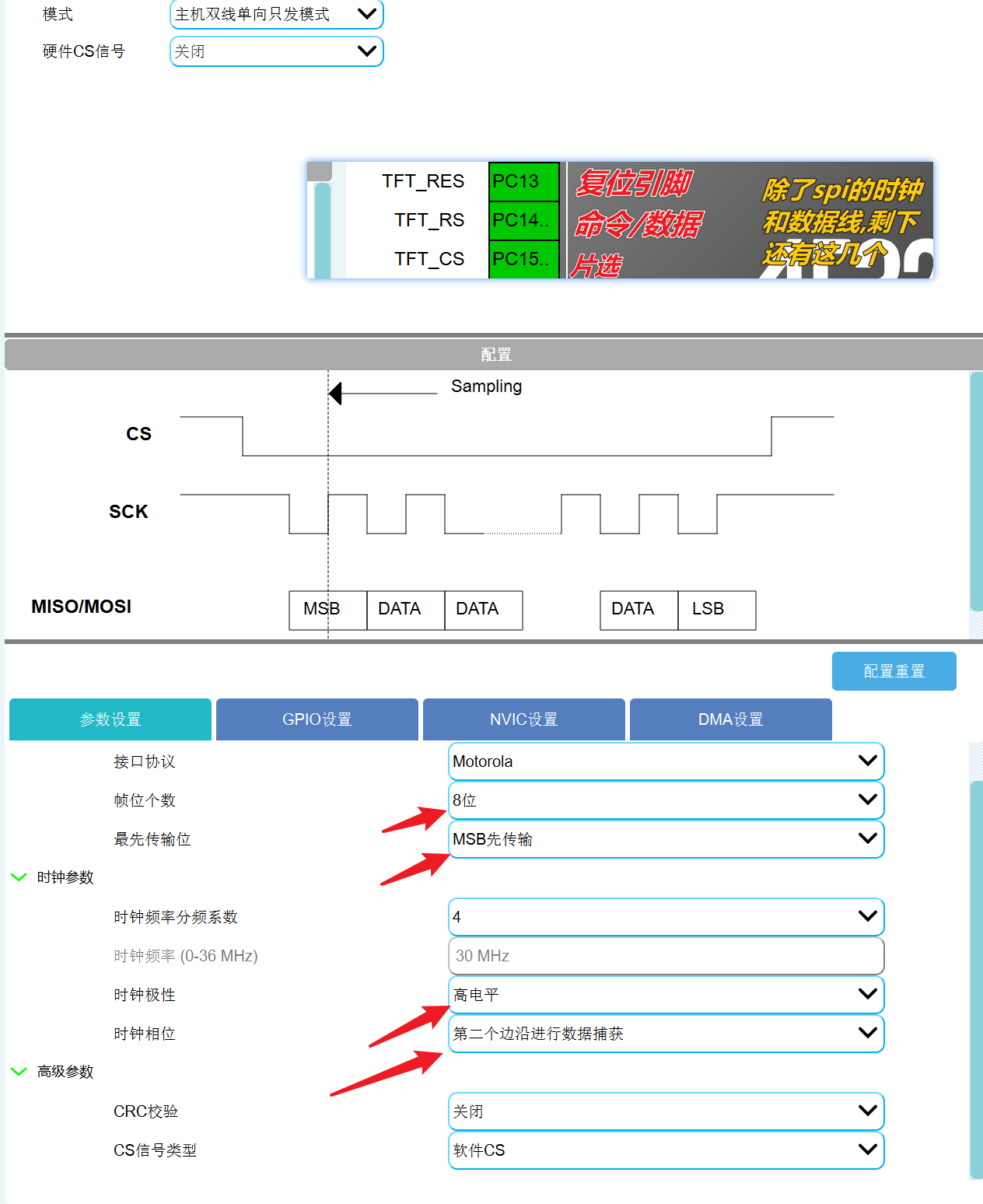 .第一步,设置好spi的传输模式