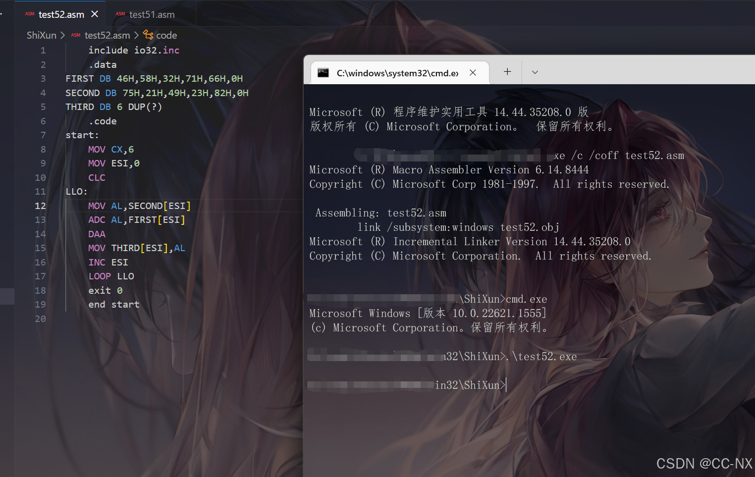 LLO: MOV AL,SECOND[ESI] ADC AL,FIRST[ESI] DAAMOV THIRD[ESI],ALINC ESILOOP LLOexit 0end start