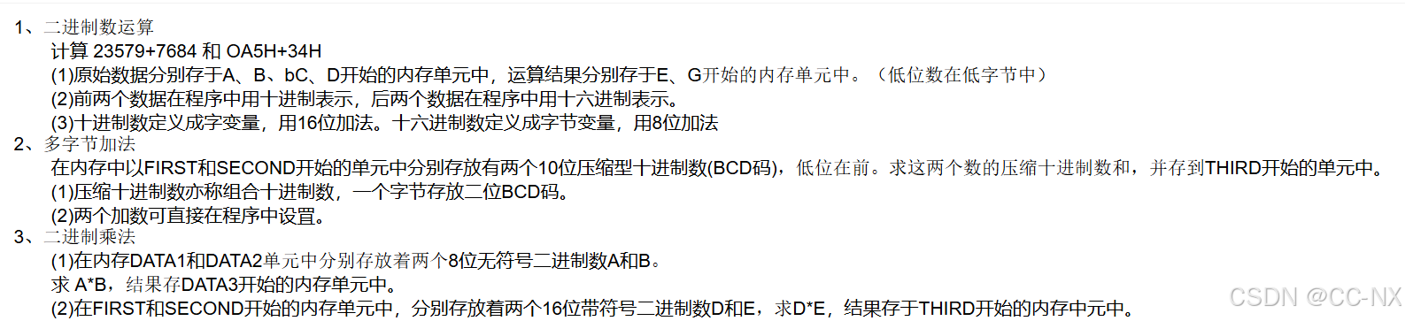 (1)题目的具体要求,将原始数据及存放结果的内存单元分别定义成字变量或字节变量。