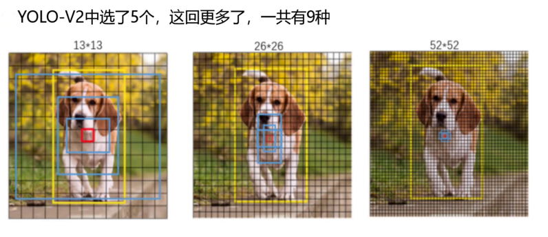 YOLOv2使用了5个先验框,这里的v3使用了9种先验框