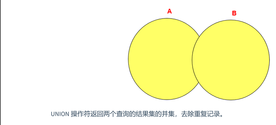 # 左中图 + 右上图 A∪BSELECT employee_id,last_name,department_nameFROM employees e LEFT JOIN departments dON e.`department_id` = d.`department_id`WHERE d.`department_id` IS NULLUNION ALL #没有去重操作,效率高