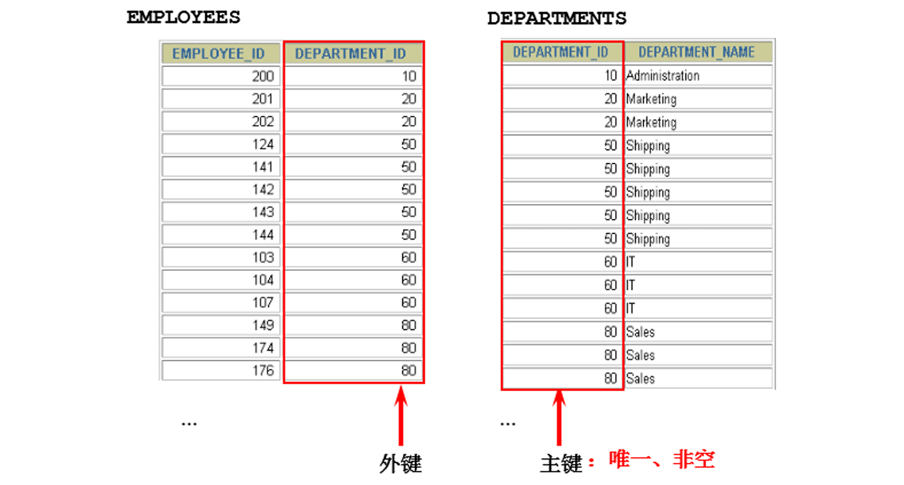 ON employees.department_id = departments.department_id;#把关联字段写在using()中,只能和JOIN一起使用