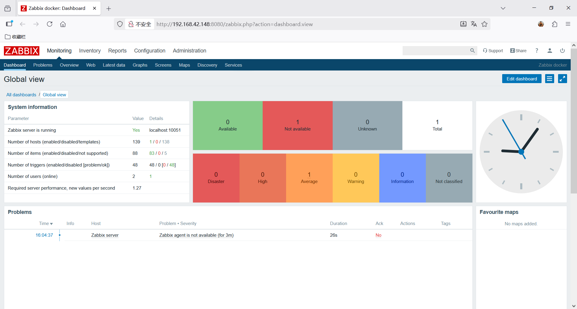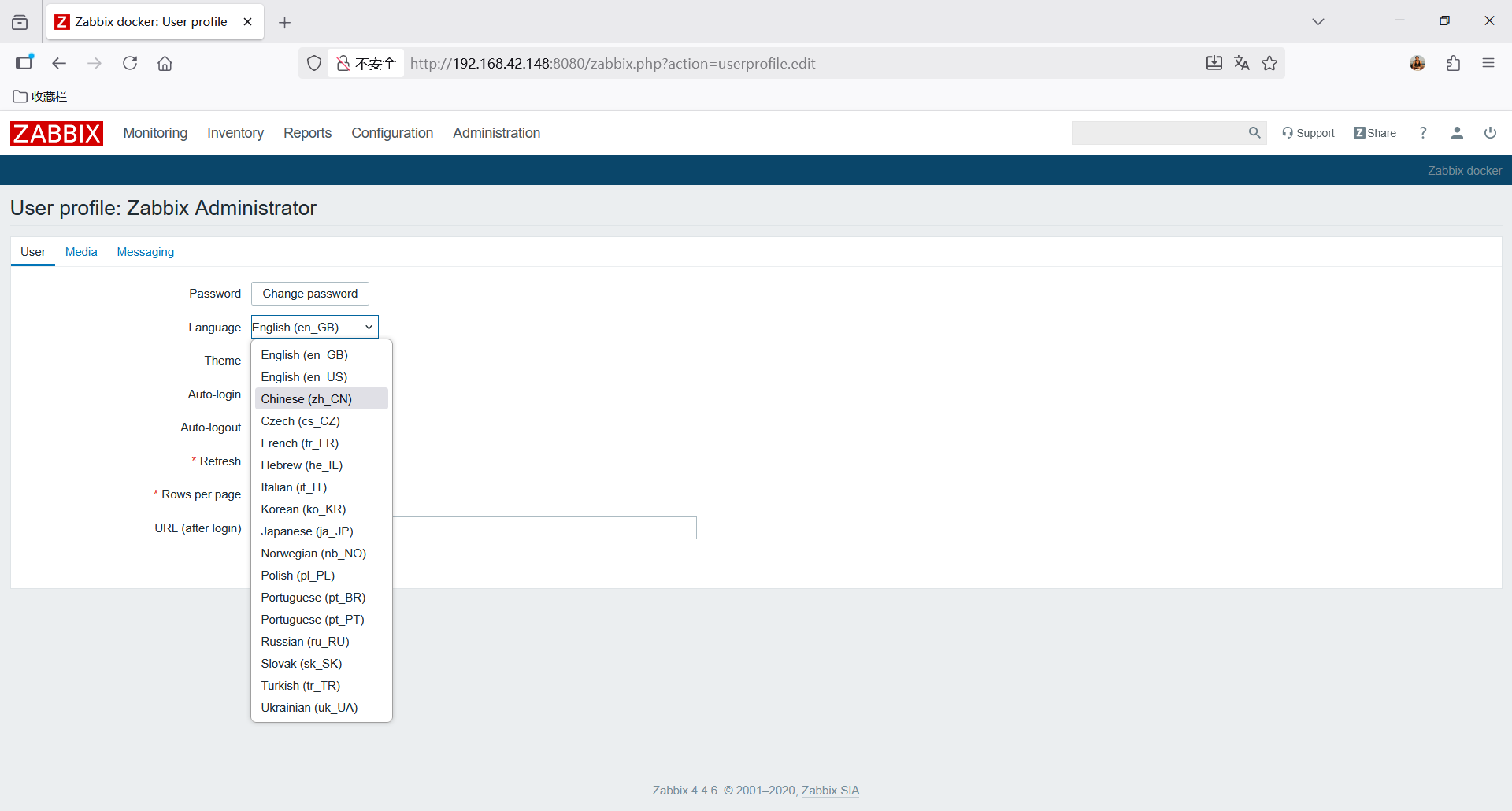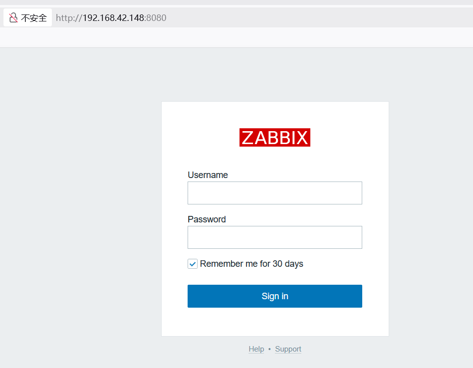 此时使用浏览器输入http://192.168.42.148:8080就能打开zabbix平台