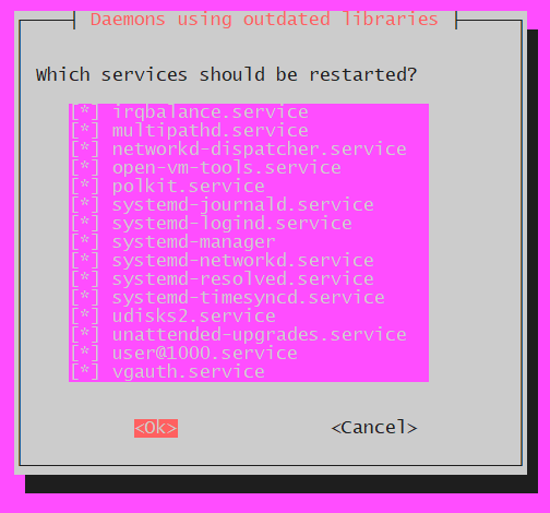 在upgrade的时候会出现需要重启那些服务,这里选择所有