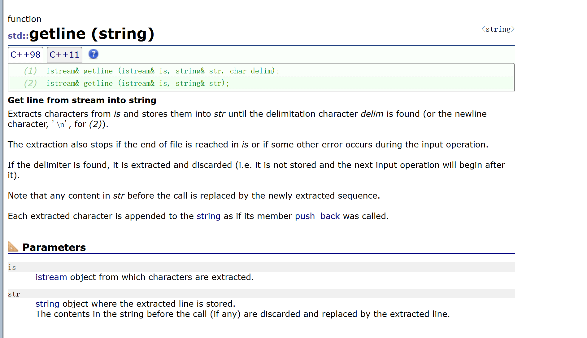 注意:getline不给结束位置的时候,就是默认遇到换行符才停止