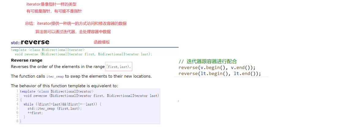 (1)迭代器一共有四种:分别是迭代器(iterator)、反向迭代器(riterator)、const迭代器(const iterator)、const反向迭代器(const riterator)