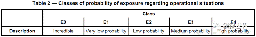 暴露率,用EX表示, X取值从0至4,共5个等级。E0是几乎不肯能暴露于危险中,E4是可能性极高。