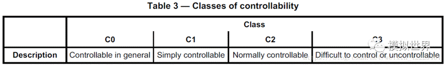 第二个概念:Controllability(C)可控性。危险所涉及的驾驶员和其它交通人员通过及时的反应避免特定伤害或损失的能力(controllability, 简称C) 。Controllability是指故障发生以后,驾驶员是否可以人为对故障状态加以控制。C值越大则越难以控制。比如前面的例子中,如果反向的转向助力非常大,以至于驾驶员靠手臂的力量无法控制方向盘,则C值也就很大。