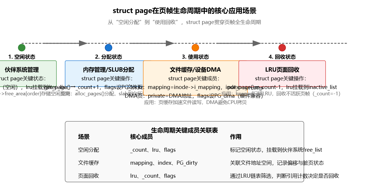 是Linux内核内存管理的基石,其设计兼顾了紧凑性和灵活性,通过联合体复用内存、条件编译适配不同架构,支撑了内核多个子系统的高效运作。在使用struct page