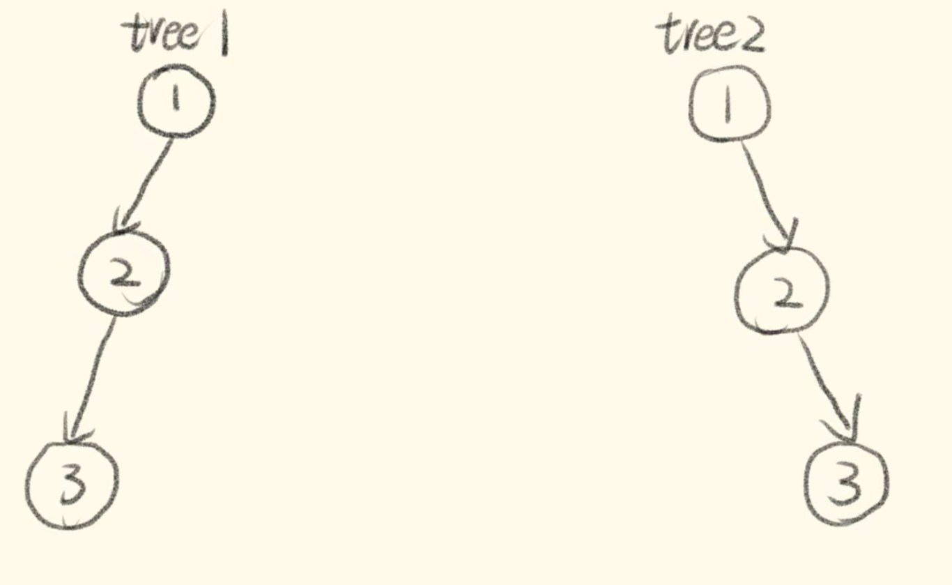 那么tree1 和 tree2 的前序和后序完全相同,这是一棵树么,很明显是两棵树!