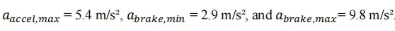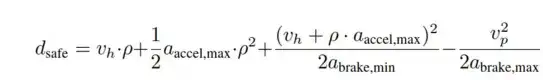 安全距离计算:主车(ch)与前车(cp)之间的纵向安全距离(dsafe)通过以下公式计算得出: