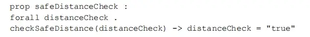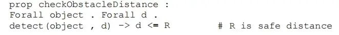 声明性规范:该属性用于验证预评估步骤输出的距离检查结果(distanceCheck)是否始终为真。