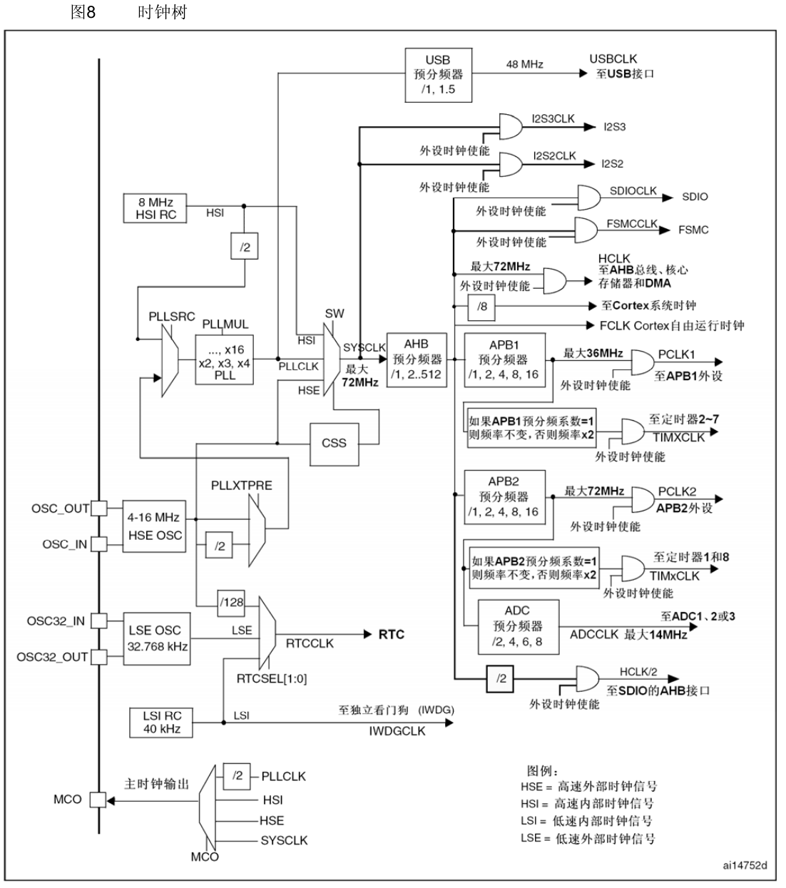从SYSCLK左边为生成时钟电路,右边为时钟分配电路。