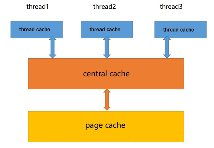 - page cache:页缓存是在central cache缓存上面的一层缓存,存储的内存是以页为单位存储及分配的,central cache没有内存对象时,从page cache分配出一定数量的page,并切割成定长大小的小块内存,分配给central cache。当一个span的几个跨度页的对象都回收以后,page cache会回收c entral cache满足条件的span对象,并且合并相邻的页,组成更大的页,缓解内存碎片的问题