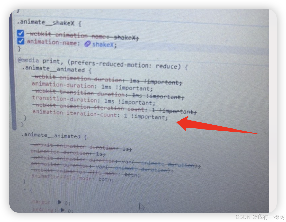 @media (prefers-reduced-motion: reduce) {.animated {animation: inherit !important; /* 不推荐 */}