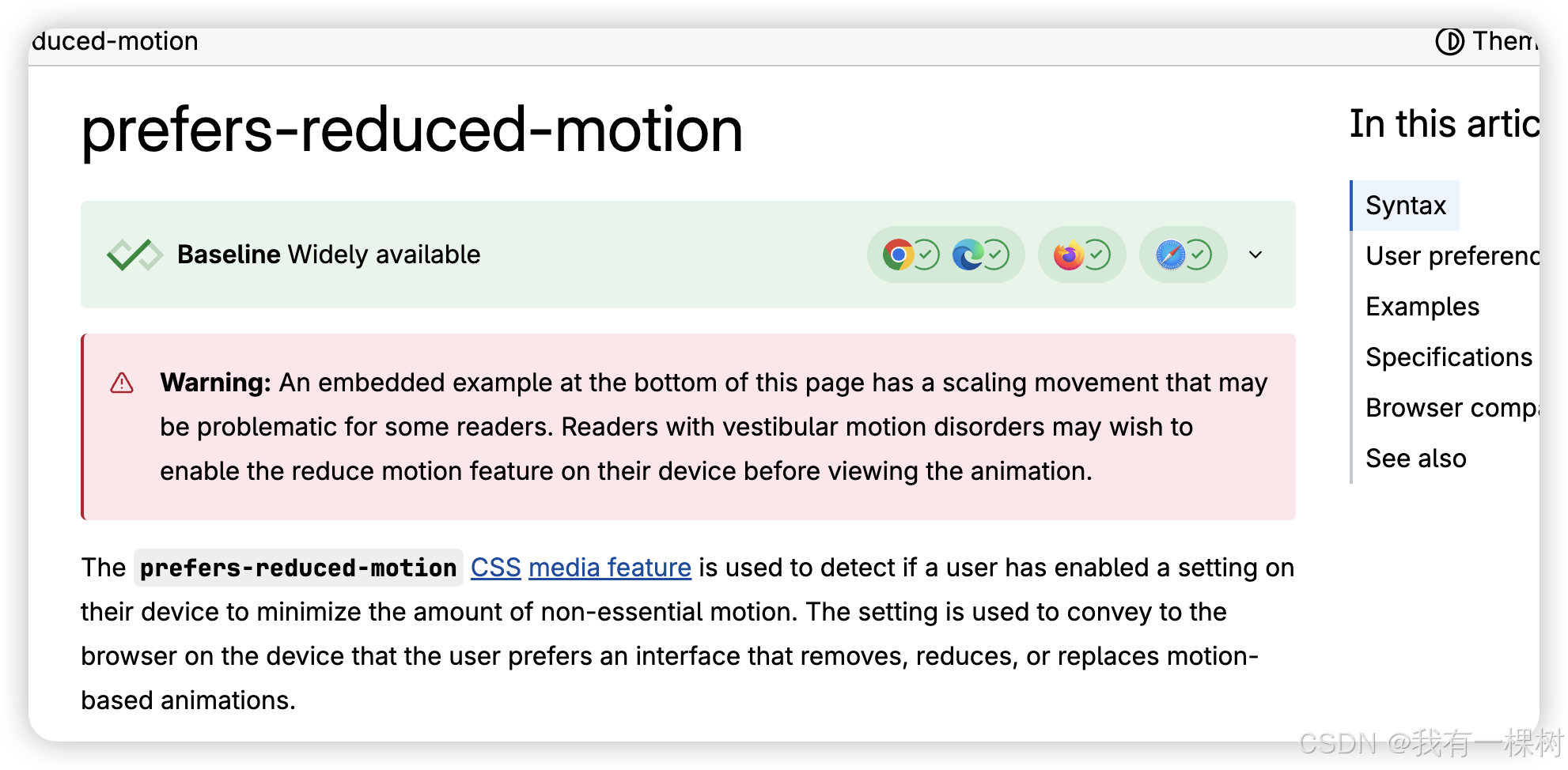 @media (prefers-reduced-motion: reduce) {/* 用户希望减少动画 */