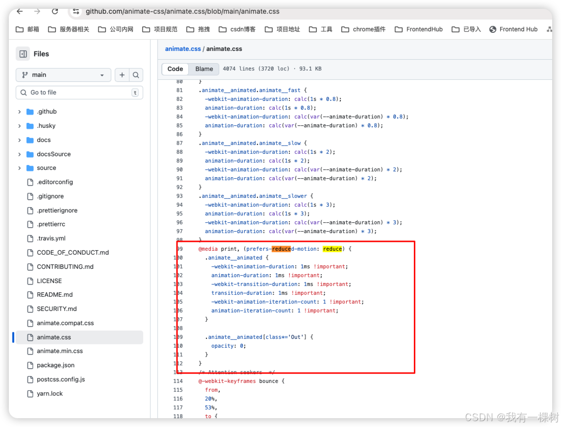 Animate.css 是一个经典的 CSS 动画库,但它非常注重无障碍体验。在源码中,你可以看到这样一段代码: