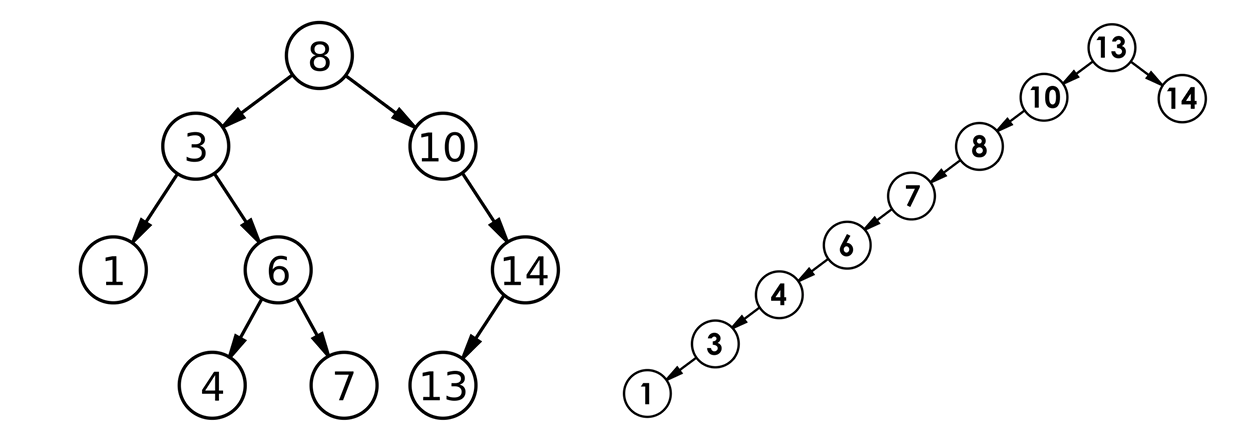 最差情况下,二叉搜索树退化为如上图的单支树(或者类似单支树),其平均比价次数为N