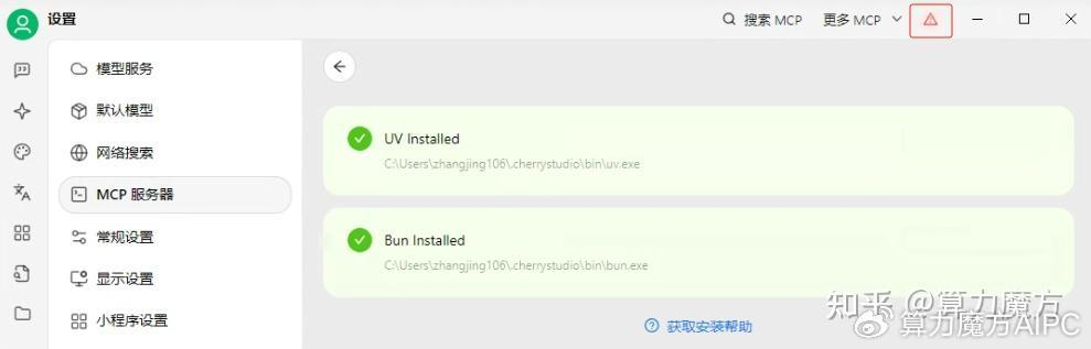 首先,打开Cherry Studio在软件的“MCP服务器”管理页面,安装好UV和Bun。