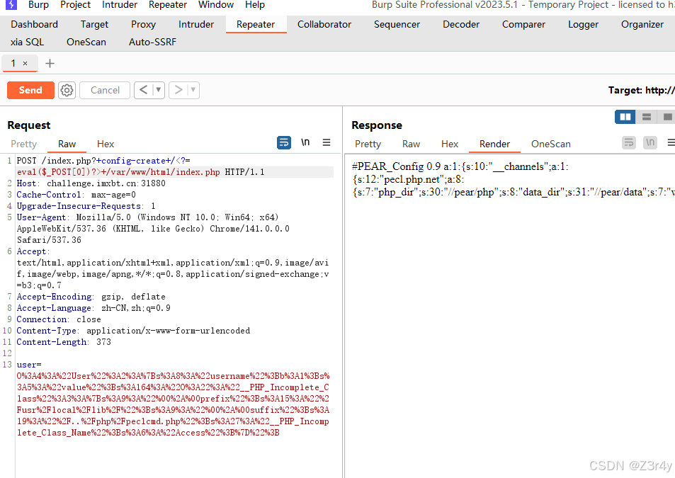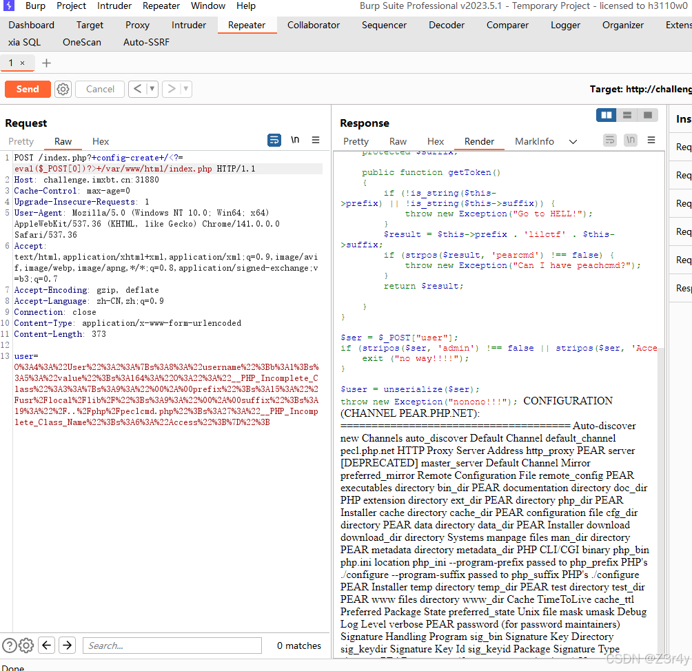 最后要求RCE,考虑pearcmd包含,但被ban了,这里可以打peclcmd(功能等价
