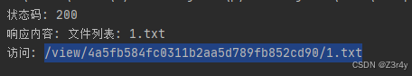 先访问/view/4a5fb584fc0311b2aa5d789fb852cd90/1.txt触发os,无回显