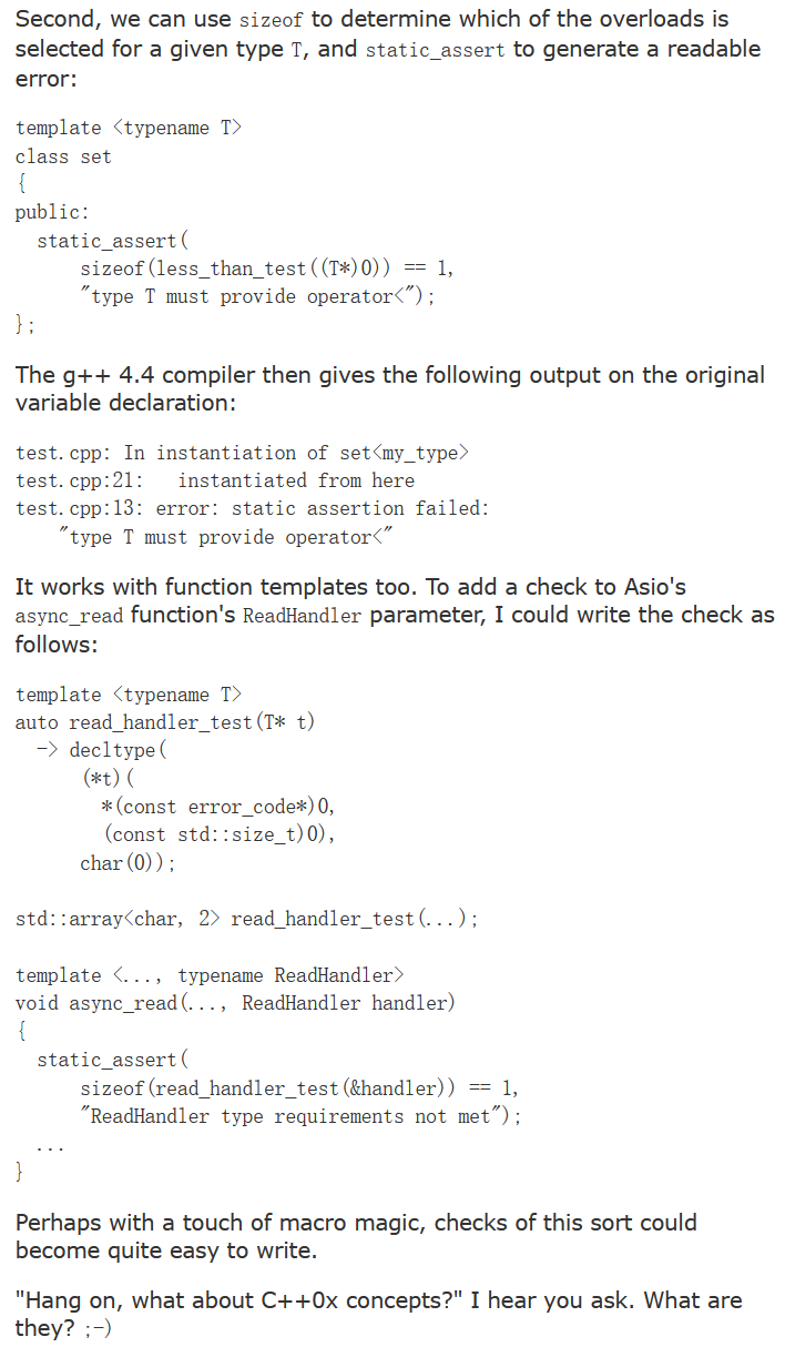{template <typename T>class set{public:static_assert(sizeof(less_than_test((T*)0)) == 1, //如果没有operator <,那么这个size就是2"type T must provide operator<");};