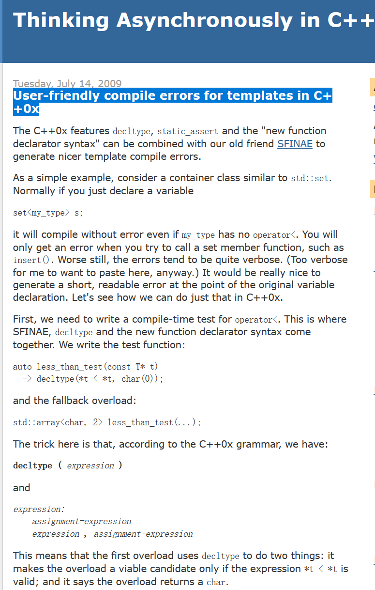 auto less_than_test(const T* t) -> decltype(*t < *t, char(0)); //注意decltype用的是逗号表达式std::array<char, 2> less_than_test(...);namespace My
