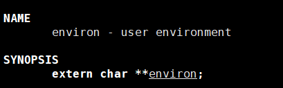 这第三种方式就是名为environ的变量,我们可以看到这个变量是一个二级指针,那么它指向的是什么呢?