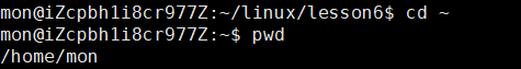 这个就是我们的家目录,我们通过cd ~指令就能回到当前用户的家目录,而这个指令的实现同样是通过获取HOME这个环境变量的内容来实现的。